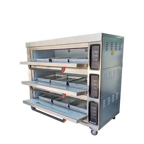 3 डेक 6 ट्रे गैस वाणिज्यिक रसोई ओवन बेकरी उपकरण बेकिंग ब्रेड पिज्जा केक 220v/380v